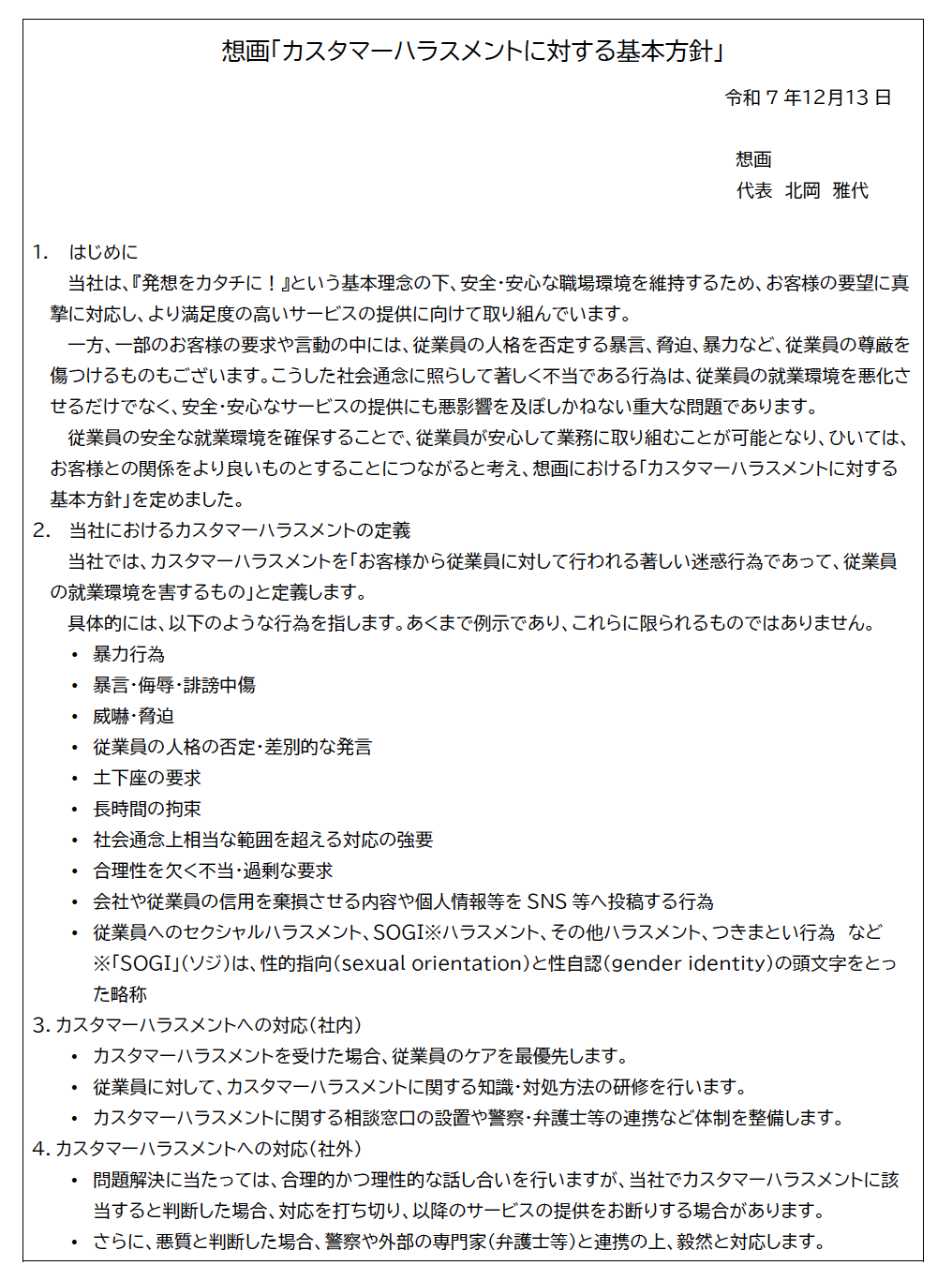 相互に尊重し合える関係性のもとで、より良いサービス提供を継続するためのものです。